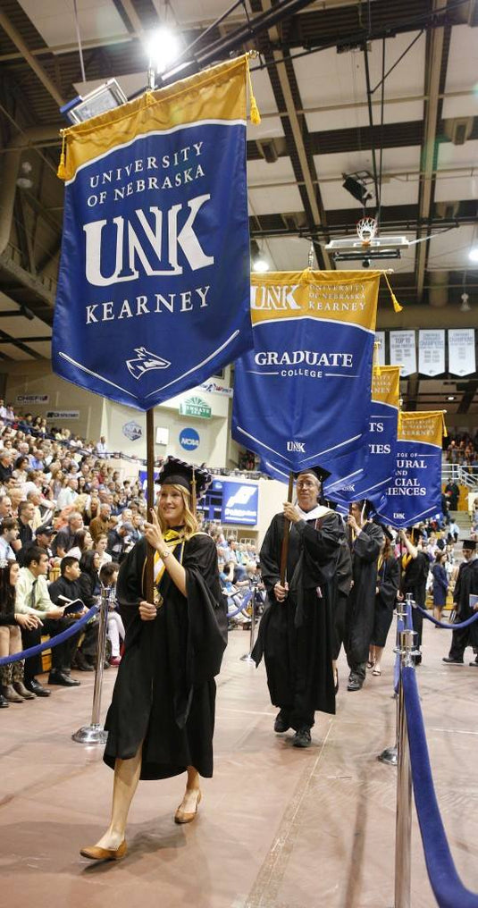Gonfalons are incredibly versatile and can be used in a variety of settings. They are particularly popular for academic events, where they complement academic pop-up banners or academic pole banners. Gonfalons are also ideal for ceremonial occasions, processions, and stage presentations. Their striking appearance and durable fabric make them the perfect choice for both short-term events and long-term displays. Whether displayed on a podium or as part of a larger event setup, gonfalons help create a professional, dignified atmosphere.